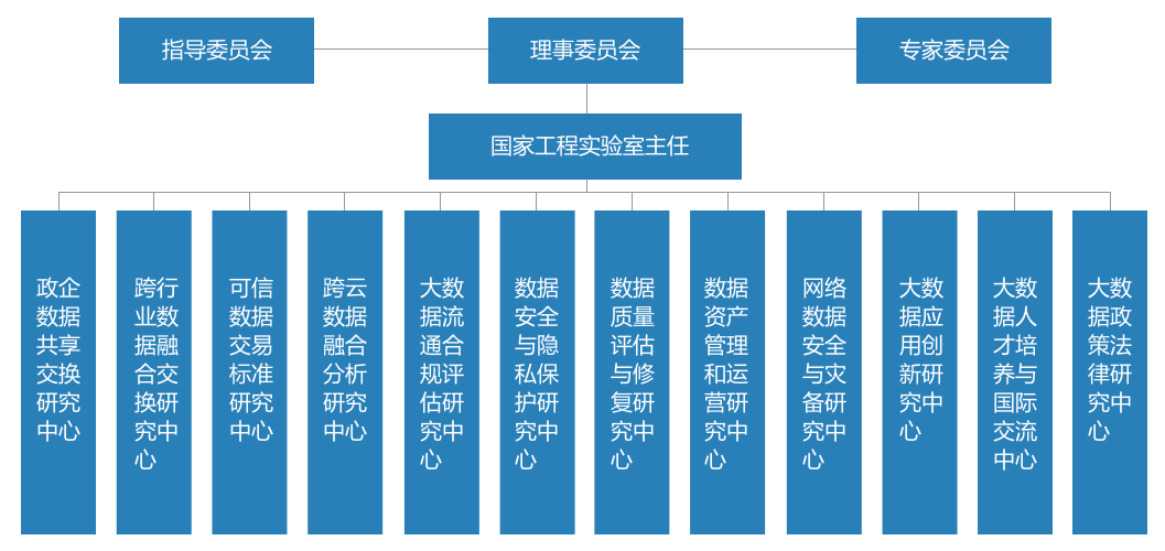 大數(shù)據(jù)流通與交易技術(shù)國家工程實驗室設(shè)“三會一主任+研究中心”。由“三會”協(xié)同領(lǐng)導(dǎo)推進實驗室發(fā)展,設(shè)指導(dǎo)委員會,理事委員會,第一屆專家委員會。由實驗室主任負責(zé)統(tǒng)籌指導(dǎo)實驗室建設(shè)。由“研究中心”負責(zé)推進具體研究方向的研發(fā),首批建設(shè)十二個研究中心,包括:政企數(shù)據(jù)共享交換研究中心,跨云數(shù)據(jù)融合分析研究中心等。(美通社,2017年2月21日上海)