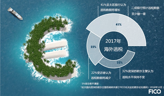 費埃哲(FICO)近期開展的一次調(diào)研表明,亞太區(qū)1/5的銀行表示他們預計逃稅數(shù)額將比去年增長100%至500%,雖然今年即將出臺解決該問題的全新報告規(guī)定。此外,約1/5的反欺詐高管在受訪時談到,他們預計逃稅問題將比去年最多增加一倍。同時,僅有22%的受訪者認為今年的逃稅數(shù)額將會減少。100多個司法轄區(qū)已經(jīng)簽署共同申報準則(CRS)項下的《銀行間自動交換信息新標準》(AEOI)。該標準今年出臺后,首批亞洲國家將從9月起開始共享有關居民的稅務信息。(美通社,2017年6月5日北京)