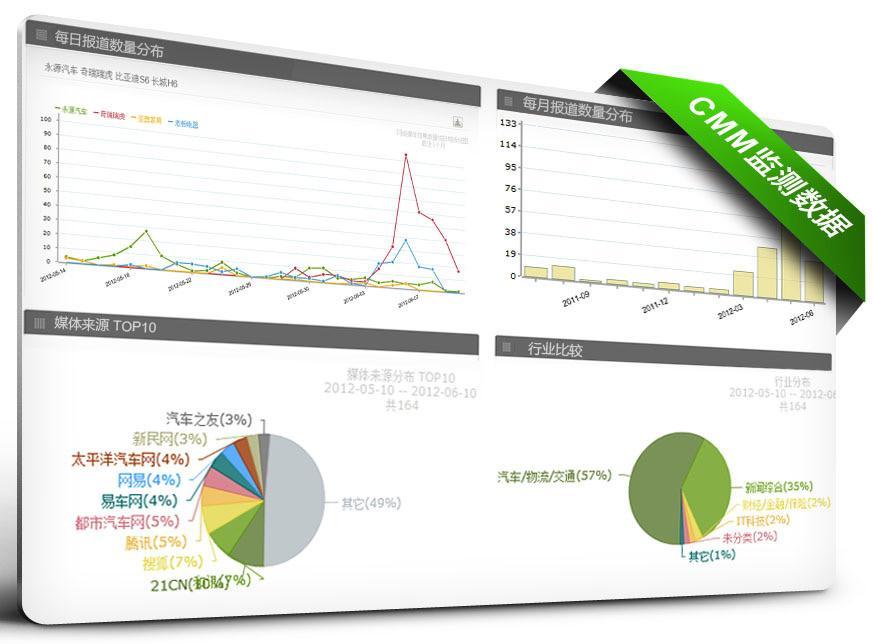 北京2012年6月18日電 /美通社亞洲/ -- 全球領先的企業傳播服務機構 -- 美通社今日宣布正式推出全新的“中國網絡與社交媒體監測服務”(China Media Monitoring,以下簡稱CMM),可視化的圖表與監測分析報告,可幫助企業市場、公關等品牌傳播部門了解企業自身及競爭對手品牌、產品、服務的媒體報道及社交媒體輿情信息,量化評估并調整新聞發布和品牌營銷傳播工作的側重。企業用戶可登錄 http://cmm.prnasia.com 申請試用,即刻體驗。