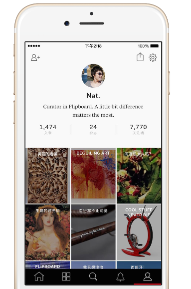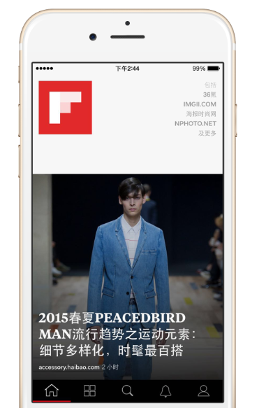 現(xiàn)有 Flipboard 用戶中,大約有95%的人在使?智能?機(jī)進(jìn)行閱讀。第三代 Flipboard 專(zhuān)為主流的大尺?手機(jī)屏幕進(jìn)行優(yōu)化——全新的界面設(shè)計(jì)和扁平導(dǎo)航架構(gòu)。讀者可以通過(guò)全新的導(dǎo)航欄在?機(jī)上快速訪問(wèn)5大核心功能:主頁(yè)、搜索、我的空間、通知以及已關(guān)注的內(nèi)容源、好友和關(guān)聯(lián)的社交賬號(hào)。全新的?步式 “收集” 操作,更美觀的雜志封面,更簡(jiǎn)潔的雜志數(shù)據(jù)呈現(xiàn)——所有這一切,讓你的收集和雜志制作更輕松,更炫酷。