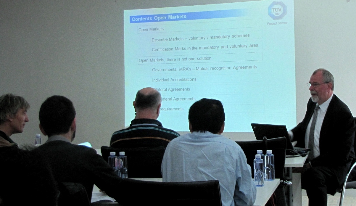 此次研討會分享了國際認證管理領域的一些最新發展,并提供了如何遵守全球性技術要求的信息。在一個國家內,各種規章制度變動頻繁,要求與它們保持同步則是一件不簡單的事。產品市場的成倍擴大使得與各種規章制度接軌變成了一項十分繁重的任務。在沒有統一標準的情況下,同一產品進入不同國家的市場將會需要一個漫長的審批過程,縱然合規性審核部門再敬業也是如此。TUV 南德意志集團 Kreinberg 博士有超過30年的國際認證工作經驗,在本次研討會上,他介紹了一些中國主要出口目的國的市場現狀和法規要求,并為在場的企業和買家建議了解決方案。他說:“最近幾年,發達國家的技術性貿易難題日漸增多,它們更系統、更廣泛、更嚴格、 更具隱蔽性。作為全球較大的制造國,中國出口產品面臨的困難越來越多,獲取國際認證證書或標志,是突破各種難題,順利打入國際市場的有效途徑。”