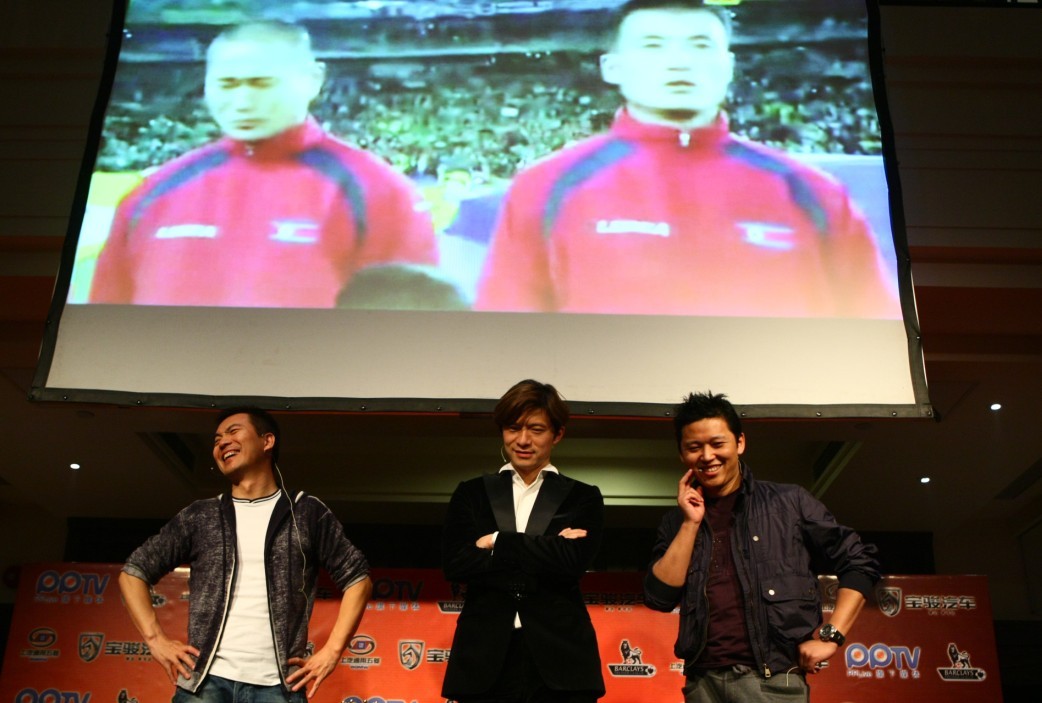 上海2011年4月18日電 /美通社亞洲/ -- 17日晚,PPTV 網絡電視直播英超賽事第2場地面活動在上海一家別具情調的歐式酒吧正式開煲。直播經驗豐富的 PPTV 網絡電視首發強勢組合“蟹皇粥”,黃健翔、謝暉、周亮三位著名解說主持人亮相當晚阿森納對陣利物浦隊的比賽解說中。令人意外的是,在當晚的解說中,一組來自民間自發組成的解說隊 -- “菜泡飯”,公開踢館,活動現場一片嘩然,人氣爆棚,三位解說主播表示會積極接戰。(PPTV 網絡電視英超直播地址:http://yingchao.pptv.com/。)