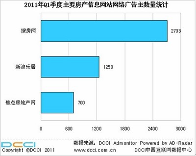 2011年第一季度搜房網房產類廣告投放量行業占比近六成,領跑行業。2011年 Q1搜房網房產類廣告的推廣項目數占行業整體56.5%;2011年 Q1 搜房網房產類廣告主數占房產廣告整體廣告主數的70.9%;2011年 Q1搜房網房產類廣告創意數行業占比55.2%,各項指標均處于領先地位。