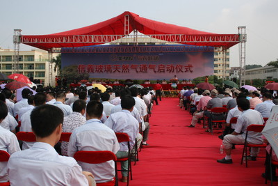 信義玻璃東莞事業(yè)部天然氣通氣慶典儀式得到了東莞市、虎門(mén)鎮(zhèn)政府相關(guān)領(lǐng)導(dǎo)和虎門(mén)鎮(zhèn)路東村社區(qū)群眾的關(guān)注,東莞市、虎門(mén)鎮(zhèn)政府相關(guān)領(lǐng)導(dǎo)、中海油集團(tuán)代表、駐虎門(mén)各媒體記者等共1000余人參加了此次的“油改氣”工程啟動(dòng)儀式。“油改氣”工程的啟動(dòng),成為信義玻璃在清潔能源利用、促進(jìn)節(jié)能環(huán)保史上的重要里程碑。