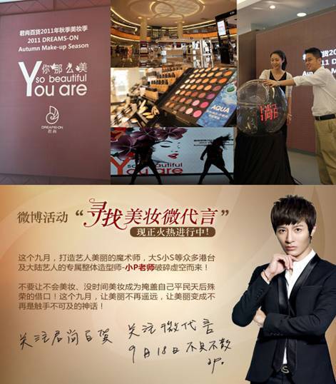君尚百貨http://weibo.com/junshangbaihuo還在新浪微博上發(fā)起了名為“尋找美妝微代言”征集活動(dòng),這是新浪微博上首例以“微代言”為主題的微博選秀活動(dòng),此口號(hào)一打響,便在新浪微博平臺(tái)上引起軒然大波。9月2日至9月16日,召集網(wǎng)友曬出妝前妝后對(duì)比照,上傳至君尚百貨官方微博即可參選活動(dòng),亞洲最爆人氣造型師小P老師將親臨現(xiàn)場(chǎng),并參與評(píng)選的全過(guò)程,最后由小P老師認(rèn)定10強(qiáng)殊榮,冠亞季軍將分獲5000元、3000元、2000元化妝品大禮包以及300元美妝禮包。