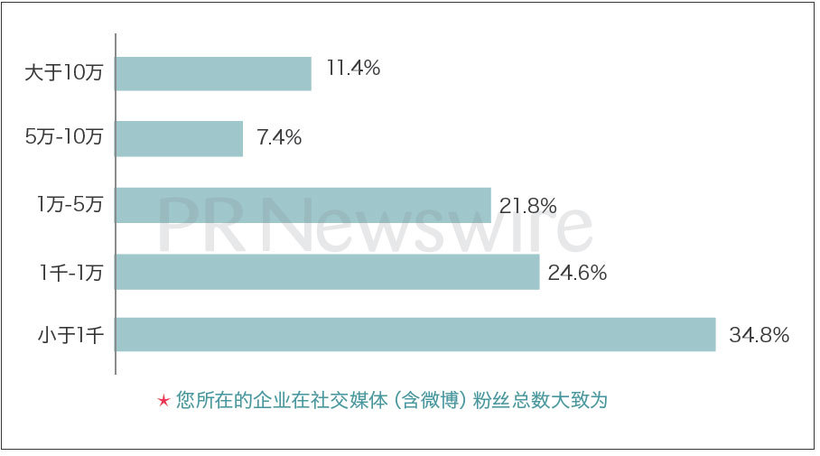 您所在的企業在社交媒體(含微博)粉絲總數大致為