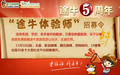 即日起至5月25日,無論是途牛旅游網的老會員,還是初次到途牛旅游網分享旅游心得的新伙伴,均可點擊如下鏈接報名參與:http://bbs.tuniu.com/thread-181521-0.html