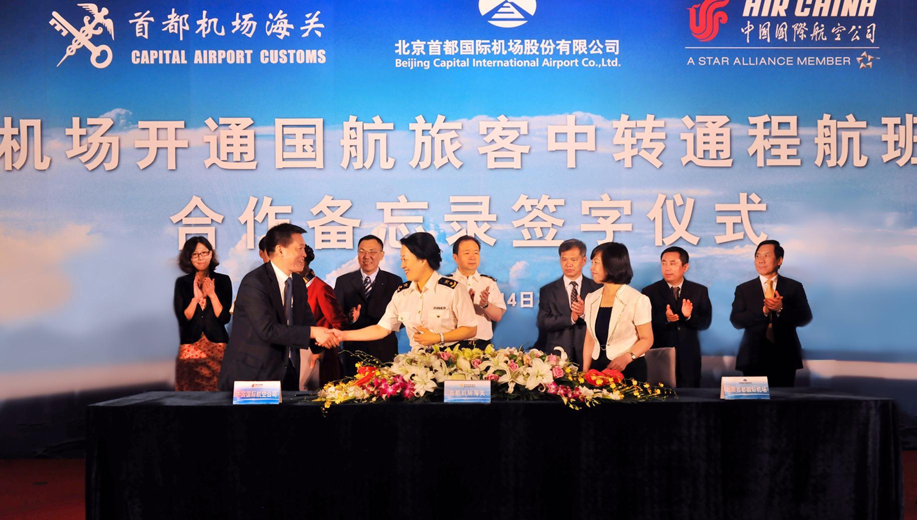 北京2012年6月15日電 /美通社亞洲/ -- 今天,首都機(jī)場海關(guān)、北京首都國際機(jī)場股份有限公司、中國國際航空股份有限公司(以下簡稱“國航”)三方就開通經(jīng)北京首都機(jī)場國際轉(zhuǎn)國內(nèi)通程登機(jī)行李直掛服務(wù)簽署了合作備忘錄。首都機(jī)場海關(guān)關(guān)長胡天舒、北京首都國際機(jī)場股份有限公司總經(jīng)理張光輝和中國國際航空股份有限公司總裁蔡劍江出席了此次簽署儀式,三方代表就在北京首都機(jī)場開通通程登機(jī)行李直掛服務(wù)的航點、流程以及行李監(jiān)管等業(yè)務(wù)事宜達(dá)成了協(xié)議。
