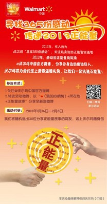 沃爾瑪中國公司事務高級總監李玲表示:“今年恰逢沃爾瑪全球50周年,也是沃爾瑪在中國經營的第16個年頭。沃爾瑪伴隨著中國經濟發展,和老百姓的生活一起成長。作為一家植根于中國市場的外資企業,@沃爾瑪中國官方微博的推出將為公眾打開一扇深入了解沃爾瑪的窗口。我們也期待和網友們“零”距離的交流,成為知己、生活中的依賴和幫手。@沃爾瑪中國官方微博也將繼續履行一名企業公民的責任,號召網友一起,為顧客,社區,和社會奉獻愛心和溫暖。我們希望在這里聽到顧客與沃爾瑪之間的故事,一起分享美好生活中購物帶給我們那刻歡喜、溫暖和感動。”