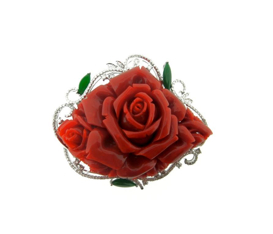 深受中國買家喜愛的紅珊瑚玫瑰胸針