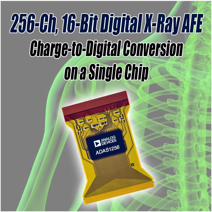 ADI公司的ADAS1256模擬前端(AFE)在單芯片中集成完整的電荷至數(shù)字轉(zhuǎn)換信號鏈,支持包括便攜式系統(tǒng)在內(nèi)的多種數(shù)字X射線成像方式。