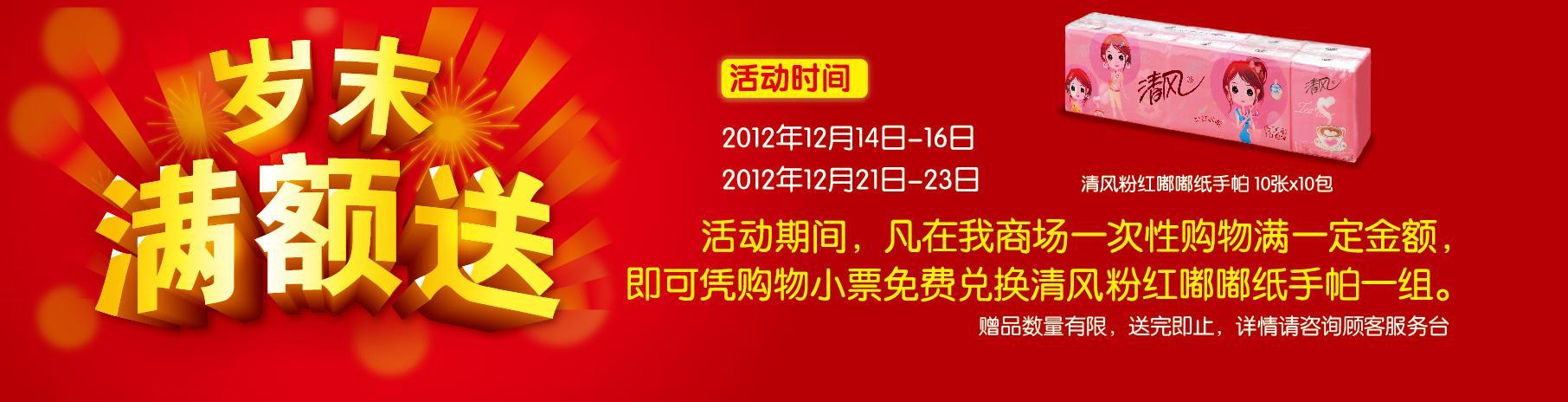 為了回饋顧客,全國范圍的沃爾瑪購物廣場(chǎng)還推出“歲末滿額送”活動(dòng)。12月14日至16日、12月21日至23日,凡在沃爾瑪購物廣場(chǎng)購物滿一定金額,即可憑小票免費(fèi)兌換清風(fēng)粉紅嘟嘟紙手帕一組(以店內(nèi)海報(bào)或顧客服務(wù)臺(tái)咨詢?yōu)闇?zhǔn),贈(zèng)品數(shù)量有限,送完即止)。