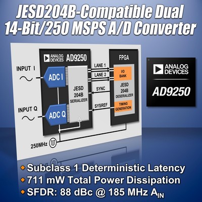 上海2013年2月28日電 /美通社/ -- Analog Devices, Inc. (NASDAQ: ADI) 全球領先的高性能信號處理解決方案供應商,其FPGA開發(fā)平臺兼容的 FPGA 夾層卡 (FMC) 系列采用 JEDEC JESD204B SerDes(串行器/解串器)技術,最近該系列推出新品 AD9250-FMC-250EBZ 套件。數(shù)字和模擬設計人員可以利用 AD9250-FMC-250EBZ 套件簡化并快速完成高速 JESD204B ADC-FPGA平臺的原型開發(fā)。
