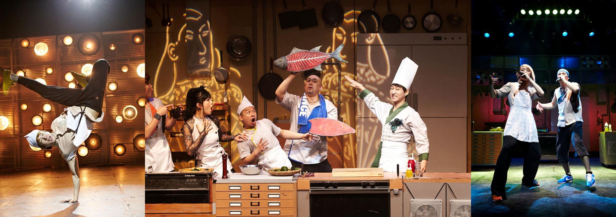 《BIBAP》環(huán)繞 BIBAP 餐廳內(nèi)兩大主廚為爭(zhēng)奪廚神寶座的故事,演員融合口技(Beatboxing)、街舞、雜技、無(wú)伴奏合唱、武術(shù)及觀眾互動(dòng)等表演形式先后炮制出日式壽司、意大利薄餅、中華雞肉湯面等,最終以韓國(guó)國(guó)寶級(jí)料理Bibimbap(韓式拌飯)一決高下。拌飯制作過(guò)程從清洗食材到切菜、炒菜再吃進(jìn)嘴里等的聲音,都透過(guò) Beatbox 和無(wú)樂(lè)器伴奏的方式一一呈現(xiàn),而烹飪料理的情景則融入 B-Boy 舞蹈、雜技及武術(shù)功夫之中,公演完畢大家更可以一嘗帥氣演員們烹調(diào)的美味拌飯。