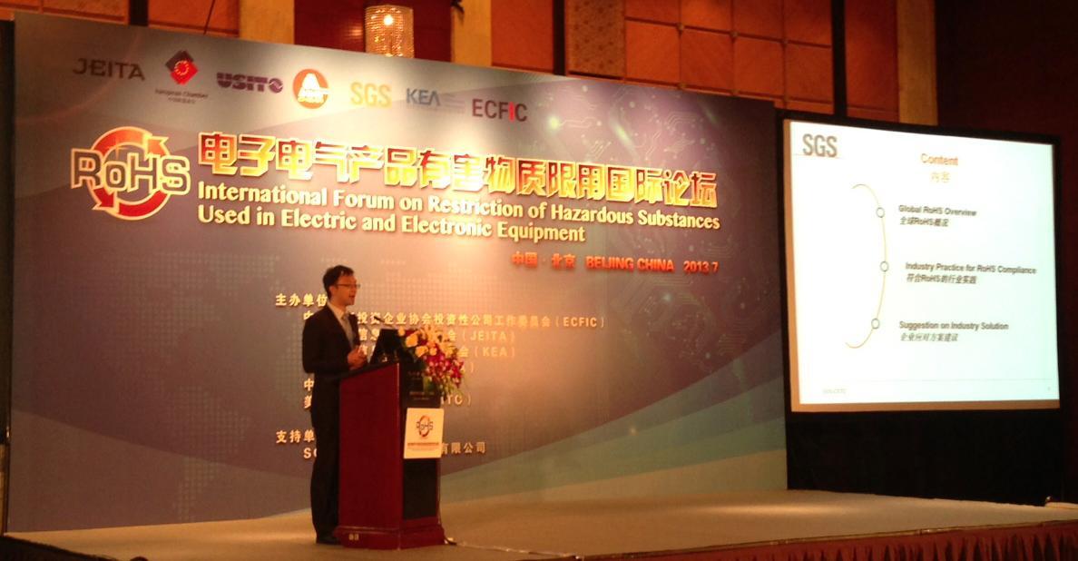 上海2013年8月1日電 /美通社/ -- 近日,全球領先的檢驗、鑒定、測試和認證機構SGS通標標準技術服務有限公司(以下簡稱SGS)攜手中國外商投資企業協會投資性公司工作委員會(以下簡稱ECFIC)、中國歐盟商會(簡稱EUCCC)等在北京成功舉辦“電子電氣產品有害物質限用國際論壇”。本次論壇共吸引百余位來自國內外制造商、出口商及相關協會機構人員參加,旨在與政府部門負責人、全球環保技術專家共同探討國內外限用物質管理現狀及發展方向,搭建國際交流與政府互通平臺,共同探索中國限用物質管理模式。
