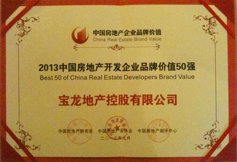 上海2013年9月18日電 /美通社/ -- 2013年9月17日下午,由中國房地產(chǎn)研究會、中國房地產(chǎn)業(yè)協(xié)會、中國房地產(chǎn)測評中心聯(lián)合主辦的“2013中國房地產(chǎn)品牌價值測評成果發(fā)布會暨房地產(chǎn)品牌發(fā)展高峰論壇”在北京舉行。寶龍地產(chǎn)(HK.1238)獲得2013中國房地產(chǎn)開發(fā)企業(yè)品牌價值50強(第36名)、中國商業(yè)地產(chǎn)企業(yè)品牌價值10強(第2名)和中國房地產(chǎn)企業(yè)較佳雇主品牌30強(第26名)三項大獎。測評結(jié)果顯示,寶龍地產(chǎn)的品牌價值達46.84億,較去年增長5.26億元。